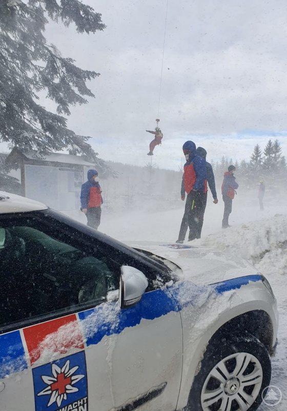 Um 11.16 Uhr alarmierte die Integrierte Leitstelle Passau den Einsatzleiter Unterer Bayerischer Wald und die Bergwacht Passau/Dreisessel zu einem Einsatz auf der Langlaufloipe nähe Duschlberg. Ein 69-jähriger einhemischer  Langläufer war auf der Loipe kollabiert. Der Notarzt wurde aus dem Rettungshubschrauber Christoph 15 aus Straubing zum Patienten verbracht mittels Rettungswinde zum Patienten abgewincht.