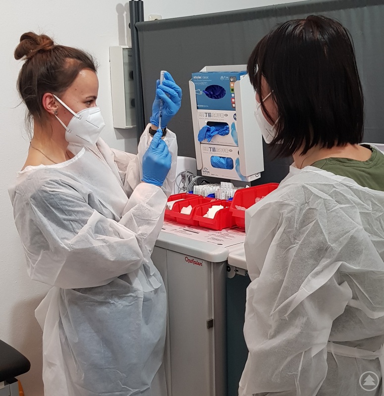 Die Assistentinnen des Impfzentrums bereiten die Injektionen vor.