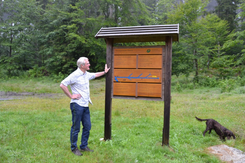 Laut Kalender ist es ein Sommertag. Gefühlt ist es ein Herbsttag. Ein verregneter und nebeliger Tag. Aber eben auch ein Tag, der den Bayerischen Wald in all seinen Facetten widerspiegelt. Ich treffe mich bei einer Außentemperatur von 14 Grad mit Michael Held in Herzogsreut. Der Hund des Försters, ein deutscher Wachtel, fühlt sich sichtlich wohl im Kofferraum des Autos. Ob er noch Lust hat auf einen Außentermin? Bis Ende Juni war Michael Held Leiter des Forstbetriebes Neureichenau der Bayerischen Staatsforsten. Der Forstbetrieb Neureichenau verwaltet eine Fläche Wald von 19.000 Hektar. Im Bayerischen Wald umfasst das Gebiet 11.000 Hektar und reicht von der Grenze zum Nationalpark in Finsterau hinunter nach Süden über den Bergkamm bis ins Dreiländereck, im Norden bis zum Nationalpark Böhmerwald. Der Treffpunkt in Herzogsreut kommt nicht von ungefähr. Denn hier entlang des ehemaligen Handelsweges Goldener Steig lässt sich eindrucksvoll nachvollziehen, wie der Wald die Menschen prägte und umgekehrt. "Der Wald ist ein Spiegel der Geschichte der Menschheit", so der Förster im Ruhestand. Zuerst hat der Mensch dem Wald den Lebensraum abgerungen. Doch das Leben im Wald war hart und karg. Mit Einsetzen des wirtschaftlichen Aufschwunges haben viele den Wald verlassen, sie wollten an steigendem Wohlstand teilhaben und siedelten aus. Dies zeigt sich nicht zuletzt an verlassen Orten wie Schwendreut und Leopoldsreut entlang des Goldenen Steiges. Für den Naturraum Wald ein Glücksfall, denn an vielen Stellen wurde großflächig aufgeforstet.