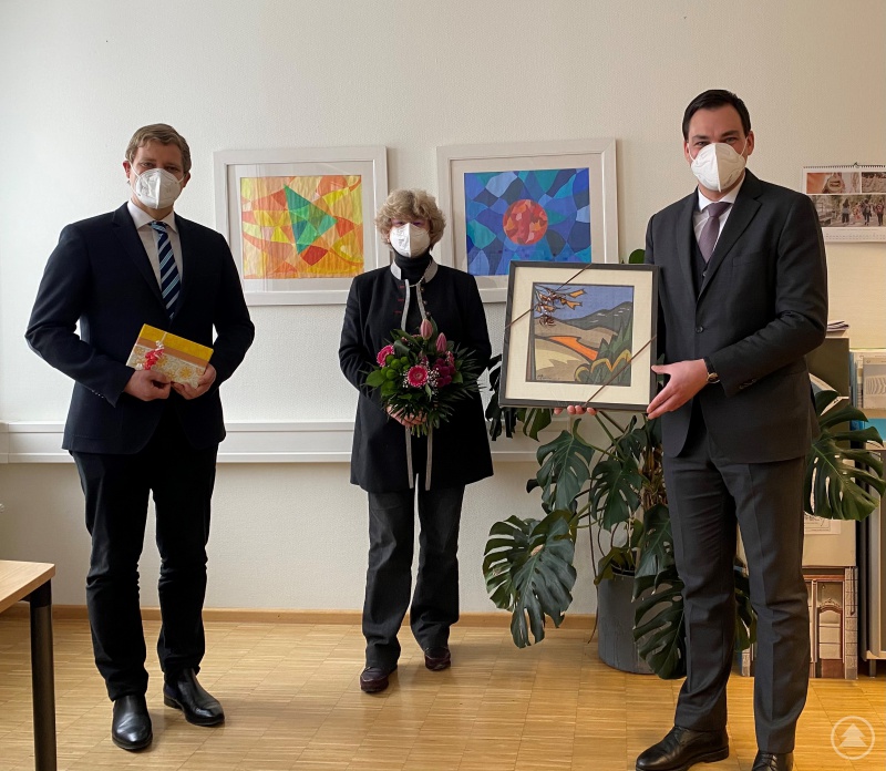 Landrat Sebastian Gruber und Bürgermeister Dr. Olaf Heinrich haben die Leiterin des Gymnasiums Freyung Barbara Zethner in den Ruhestand verabschiedet.