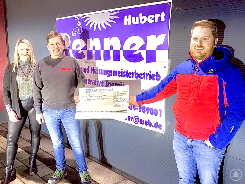 Carina und Hubert Renner übergeben Andreas Artinger (re) den Spendenscheck.Carina und Hubert Renner übergeben Andreas Artinger (re) den Spendenscheck