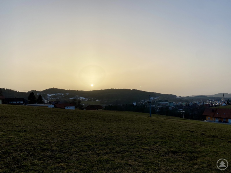 Beim Sonnenuntergang über der Stadt Freyung ist der Saharastaub deutlich zu erkennen.