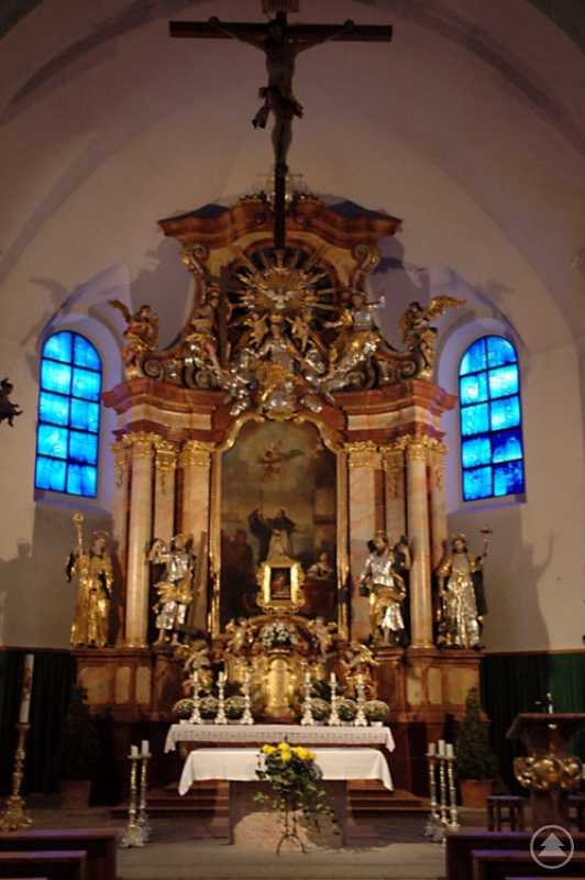 erfolgt so eine optische Abgrenzung zwischen Altar- und Kirchenraum. Und Blau