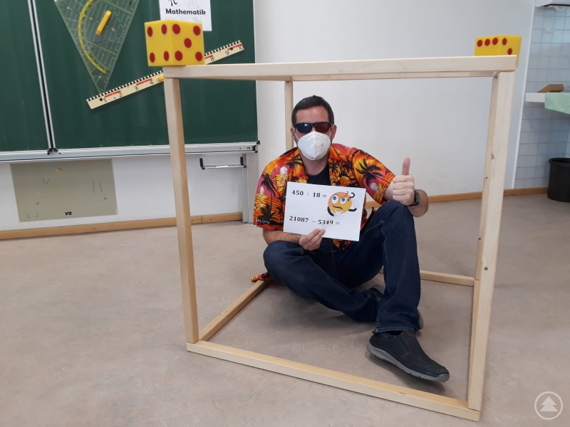 Anschaulicher Mathematikunterricht: Wie oft passt Mathelehrer Andreas Apfelbacher in den Würfel?