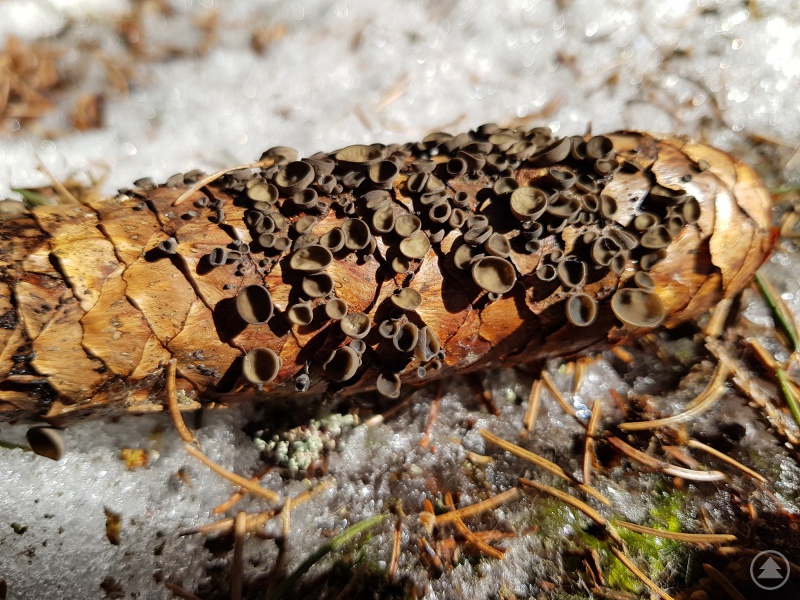 Fichtenzapfen-Becherlinge sind nach der Schneeschmelze häufig zu finden.