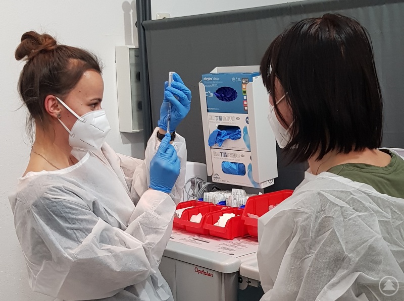 Die Assistentinnen des Impfzentrums bereiten die Injektionen vor