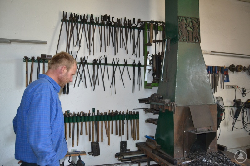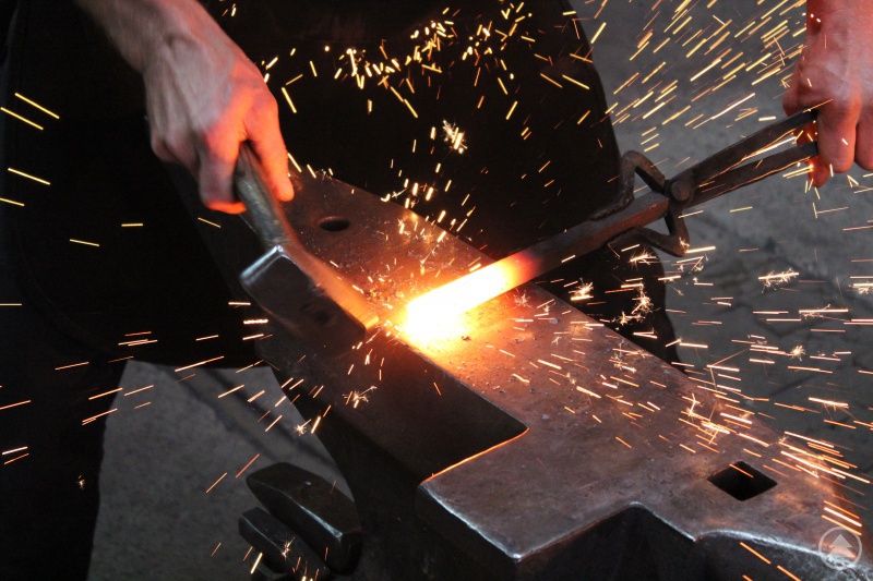 Was das Handwerk betrifft, so arbeite ich nach demselben Grundprinzip wie vor 300 Jahren: Ich brauche eine Esse, also das Schmiedefeuer, und einen etwa 250 kg schweren Amboss, auf dem ich das Metall, das Eisen schlage und der auch als Konter dient. Jeder Schmied lebt vor allem von dem Wissen, das er durch seinen Meister vermittelt bekam, von Erfahrungswerten. Man muss verschiedene Techniken erlernen, wie beispielsweise das Spalten, das Lochen oder das Stauchen.