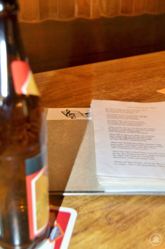 Wir haben im Wirtshaus einen dicken Ordner voller Lieder. Die hat unser Heimatverein über die Jahre zusammengetragen. Es sind in der Region bekannte Volkslieder. Lieder, die die Menschen mit ihrer Heimat verbinden, die sie oft seit ihrer Kindheit schon kennen.