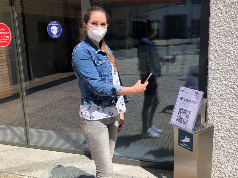 Landratsamtsmitarbeiterin Johanna Anetzberger beim Einchecken mit der Luca-App