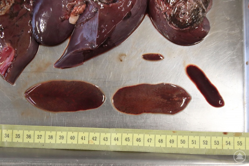 Wie sich der Amerikanische Leberegel, am unteren Bildrand vier Exemplare des Saugwurms, verbreitet, wird aktuell im Böhmerwald untersucht.
