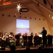Die wunderschönen Winter -und Schneebilder auf dem Bühnenhintergrund und der weihnachtlich geschmückte Koishüttler Saal sorgten für weihnachtliche Atmosphäre.