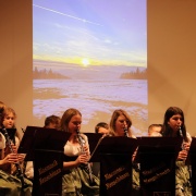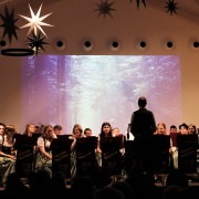 Die wunderschönen Winter -und Schneebilder auf dem Bühnenhintergrund und der weihnachtlich geschmückte Koishüttler Saal sorgten für weihnachtliche Atmosphäre.