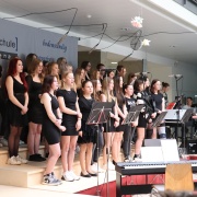 Der Schulchor begeisterte ganz besonders mit modernen Songs darunter Darbietungen wie "I'm so in love" von Jill Andrews, oder "Stitches" von Shawn Mendes, sowie die Schüler der Schulband die nicht nur gesanglich, sondern auch instrumental ihr Können zeigten. Sie präsentierten moderne Songs, wie z.B. "where is the love" von the Black Eyes Peas und "Sunroof" von Nicky Youre.