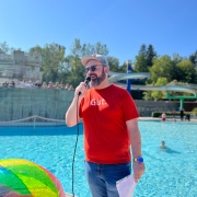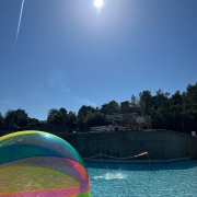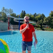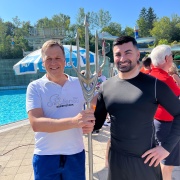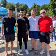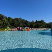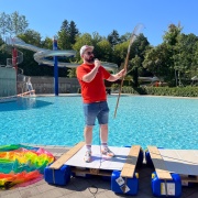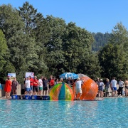 Am letzten Öffnungstag der Grafenauer "Bärenwelle" fand auch heuer wieder ein "Gaudi-Wettkampf" zwischen Vertretern des Marktes Schönberg und der Stadt Grafenau zu Gunsten der jeweiligen Bürgerstiftungen statt. Bei herrlichem Sommerwetter traten jeweils fünf Teilnehmer zum Wasserball-Duell an und ruderten auf den eigens gebauten Flößen um die Wette. Fans aus beiden Gemeinden und Gäste feuerten die Kandidaten an. Am Ende stand es unentschieden und die von den Sponsoren gespendeten 1.000 € werden unter den beiden Bürgerstiftungen aufgeteilt.