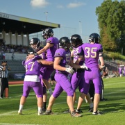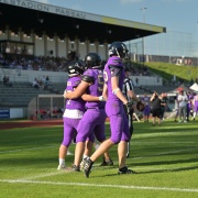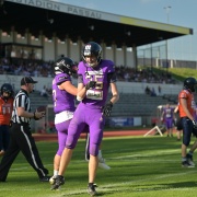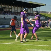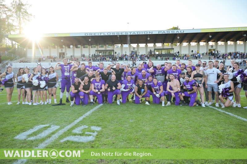 Wow, was für eine unglaubliche Saison die Passau Pirates hingelegt haben ist einfach nur bemerkenswert. Keine einzige Niederlage, jedes Spiel mit deutlichem Abstand zum Gegner gewonnen und ein Teamgeist der seines Gleichen sucht. Im Play Off Heimspiel gegen die Erlangen Sharks zeigten die Piraten von Anfang Kampfgeist und ein sehr erfolgreiches Teamspiel. Den Pokal wollten sie, das hat man bei jedem Spielzug gemerkt. Den Sharks gelangen zwar auch 2 Touchdowns aber am Ende hat es für sie nicht gereicht. Die Pirates blieben weiterhin ungeschlagen und schafften mit dem 34:14 Sieg den Aufstieg in die Bayernliga 3. Rund 1000 Zuschauer feuerten die Mannschaft an und feierten den wohlverdienten Sieg mit ihnen.