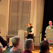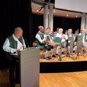 Das diesjährige Konzert der bekannten Passauer Blaskapelle, den Dreilüssemusikanten, war ihrem ehemaligen Dirigenten Manfred Herre gewidmet. Zu Beginn begrüßte der 1. Vorstand Hermann Kapfhammer die Besucher und Ehrengäste in der Redoute in Passau. Durch das Programm mit traditioneller und moderner Blasmusik führte der langjährige Begleiter und Moderator Günther Rauch. Neben Stücken von Ernst Mosch und anderen bedeutenden Blasmusikkomponisten spielten die Musikerinnen und Musiker auch Meisterwerke von Manfred Herre. Lobende und dankende Worte fanden die stellvertretende Landrätin und neu gewählte Landtagsabgeordnete Roswitha Toso und Passaus stellvertretender Bürgermeister Andreas Rother. Stellvertretend für alle Musikerinnen und Musiker bedankte sich Schlagzeuger Markus Kapfhammer mit einem Geschenkkorb bei seinem Vater und 1. Vorstand Hermann Kapfhammer für die über 15 Jahre geleistete wertvolle Arbeit. Als Vorstand hat er den Verein maßgeblich mitgeprägt. Ein tolles Konzert mit vielen Erinnerungen an Manfred Herre, Ernst Mosch und ehemalige Musiker der Passauer Dreiflüssemusikanten.