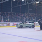 In der ersten Drittelpause wurden die neuen Autos vom Autohaus Pichert aufs Eis gefahren.