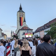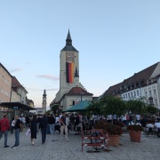 Der Obere Stadtplatz in Deggendorf verwandelte sich auch am Sonntag, 23.06.2024, wieder in eine stimmungsvolle Arena für Fußballfans. Sie waren ab 20:00 Uhr ins Stadtzentrum gekommen, um beim EM-Gruppenspiel zwischen der Schweiz und Deutschland auf der großen Leinwand mitzufiebern.