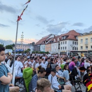 Dabei füllten sich die vielen Sitzgelegenheiten schon vor dem Anpfiff um 21:00 Uhr gut. Wer sich beim geplanten Achtelfinalspiel mit deutscher Beteiligung am Samstag, 29.06.2024, einen der begehrten Sitzplätze ergattern möchte, sollte also frühzeitig vor Ort sein. Außerdem wird es beim Public Viewing wieder einen Getränkeausschank geben.