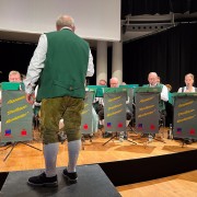 Das abwechslungsreiche Programm begann mit dem Marsch „Start frei“ und setzte sich fort mit beliebten Stücken wie „Fuchsgraben Polka“, „Rosemarie“, „Wie junge Blüten an einem Baum“, „Gartenpolka“, „Im Herzen jung“, „Gruß an Kladno“, „Sommernacht in Prag“, „Gablonzer Perlen“, „Schorschipolka“, „Korycanska Polka“, „Deutschmeister Regimentsmarsch“ und dem „Maxglaner Zigeunermarsch“. Als Dank für ihre Leistungen überreichte Gottfried Wölfl dem Vorsitzenden Hermann Kapfhammer und seinem Sohn Markus ein Foto, das bei der Verleihung der Ehrennadel der Stadt Passau an Hermann Kapfhammer im Sommer entstanden ist. Die Dreiflüssemusikanten verabschiedeten sich mit dem Stück „Bis bald auf Wiedersehen“.