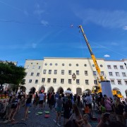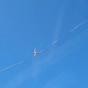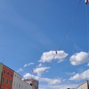 Friedi Kühne, bekannt für seine spektakulären Slackline-Kunststücke, wagte in Mühldorf einen neuen Weltrekordversuch. Auf einer 100 Meter langen Slackline, die in 30 Metern Höhe über den Stadtplatz gespannt war, balancierte er – und das mit einem Maßkrug in der Hand. Starker Wind, der die Leine in verschiedene Richtungen schwanken ließ, machte die Herausforderung noch größer. Doch Friedi meisterte sie eindrucksvoll und stellte tatsächlich einen neuen Weltrekord auf – es ist bereits der 16. in seiner Karriere.
