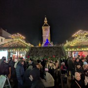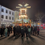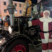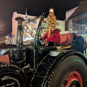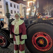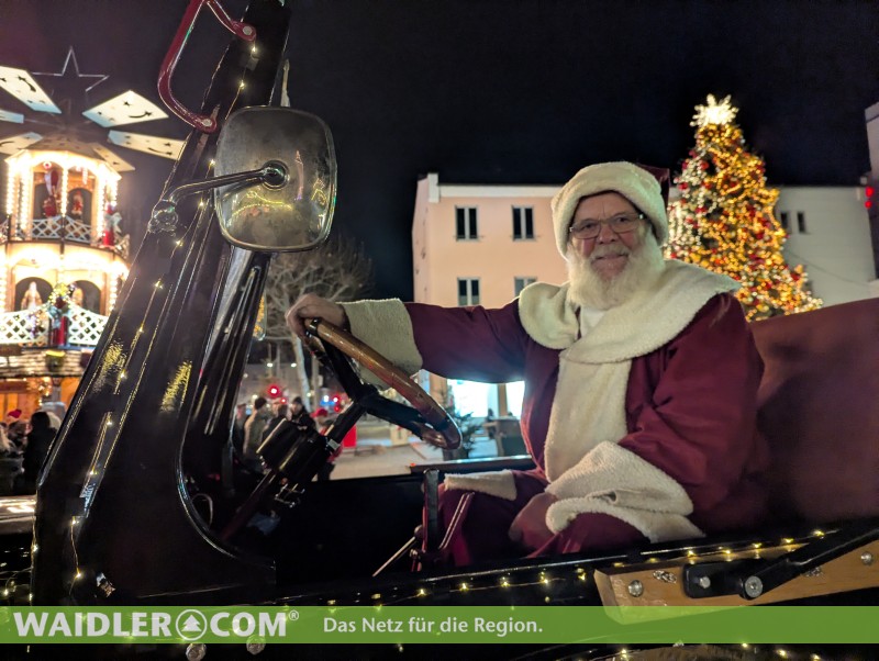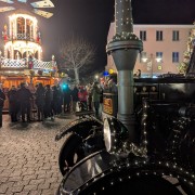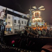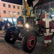Wie reist der Nikolaus eigentlich zu seinen Terminen an? Mit dem Rentierschlitten? Einem Auto? Oder kommt er mit dem Zug? Weder noch:Es zeigte sich, dass der freundliche Herr zumindest hin und wieder gerne auch auf ein PS-starkes Gefährt setzt. Mit seinem strahlend hell beleuchteten Bulldog in klassischem Schwarz sorgte er ab dem späten Nachmittag bis zum Abend für Begeisterung bei kleinen und großen Gästen. Wer Lust hatte, konnte dabei ein gemeinsames Foto mit dem Nikolaus machen oder ihm seine Weihnachtswünsche erzählen. Dieses Angebot kam an, wie die große Menschentraube am Oberen Stadtplatz zeigte.