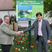 Anlässlich des 40 jährigen Städtejubiläums von Grafenau (NdB.) und Schärding (A) wurde in Schärding durch Schärdings Bürgermeister Ing. Franz Angerer der Grafenauer Park eröffnet. Begleitet wurde die Veranstaltung mit einem Bus voll Grafenauer Bürgerinnen und Bürger. Feierlich wurde die Bezeichnungstafel durch den 1. Bürgermeister der Stadt Grafenau und Schärdings Bürgermeister enthüllt. Der Grafenauer Park befindet sich gegenüber dem Schärdinger Stadtwirt vor der sogenannten "Flieher-Villa". Musikalisch umrahmte die Schärdinger Stadtkapelle die Veranstaltung. Im Anschluss wurde die Austellung "40 Jahre Städtepartnerschaft Grafenau & Schärding" in der Schlossgalerie eröffnet. Laudator der Vernissage mit den Künstlern Annemarie Pletl, Elisabeth Scheueregger und Albert Lehner war Kreis-Heimatpfleger Karl-Heinz Reimeier. Musikalisch umrahmt wurde die Feier durch die Sängerin und Gitarristin Anja Veicht. Die Ausstellung ist von 23. April bis 15. Mai 2016 jeweils Freitag bis Sonntag von 14 bis 17 Uhr zu sehen.