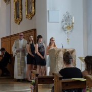 Einstudierte Musikstücke wurden anfangs beim Gottesdienst in der Stadtpfarrkirche, wie auch später bei der Zeugnisverleihung dargeboten.