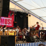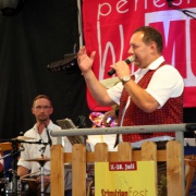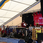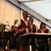 Nachdem am Nachmittag "Tom & Basti" mit Witz für Stimmung sorgten, spielte am Abend zum "Tag der Betriebe" die "Perlesreuter bleMUSI" auf.
