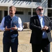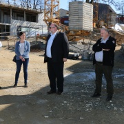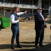 Am 1. April lud Dr. Olaf Heinrich auf die Baustelle der ersten bayerischen Volksmusikakademie ein. Gekommen waren – neben den Mitgliedern der Bezirksvorstandschaft - zwanzig Vertreter der Bezirkskapellen. Der 1.Bürgermeister der Stadt Freyung, assistiert von Katrin Obermeier von der Stabsstelle Projektmanagement gab den interessierten Zuhörern einen kurzen Überblick über die Geschichte und zum Gesamtkonzept bevor er die Besucher schließlich über die Baustelle führte.