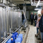 Ein Höhepunkt der Mitgliederversammlung der Werbegemeinschaft war die Brauereibesichtigung bei Bucher Bräu in Grafenau. Herr Ulrich Wiedemann, selbst Mitglied der Werbegemeinschaft, informierte die interessierten Grafenauer Firmen über die Historie und Tradition seiner Brauerei. Beim Rundgang durch die Brauerei zeigt er die verschiedenen technischen Anlagen und referierte über den Brauprozess. Von der Anlieferung der Zutaten - Hopfen und Malz, der Gärung, der Lagerung, Filtration bis hin zur Abfüllung in der Automatischen Anlage. Sehr erfreut waren die Mitglieder als sie mit dem frisch von den Tanks abgezapften "Zwickl-Bier" anstoßen durften. Abschließend kehrten die interessierten Besucher zur gemeinsamen Brotzeit ins Bräustüberl ein. Zuvor wurde hier als weiterer Vorsitzender der Werbegemeinschaft Herr Johannes Müller gewählt. Der 20 jährige Uhrmacher arbeitet im elterlichen Betrieb und möchte sich für die Belange der Grafenauer Geschäftswelt einsetzen. Er löst Ralph Drechsler von Fashion Arts ab.