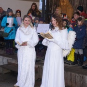 Nach der festlichen Eröffnung durch den Bürgermeister und die 2 Schönberger Christkindl unterhielt der Kinder- und Jugendchor die Besucher. Anschließend spielten die Grafenauer Blechbläser auf. Das Highlight des Abends waren die Passauer Burgdeiffen, die Teufel und Hexen tanzten um das Feuer und holten den Sensenmann zurück.