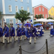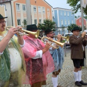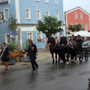 Am Freitag fand der große Festzug zum Volksfestplatz Galgenau statt. Zahlreiche Gruppen und Vereine zogen in das Festzelt ein. Trotz des Regens ließ man sich die gute Laune und die Vorfreude auf das legendäre Grafenauer Volksfest nicht nehmen.