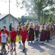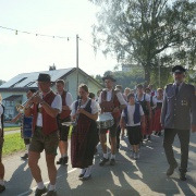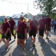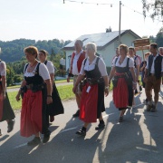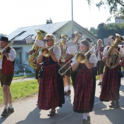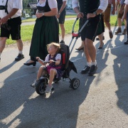 Am späten Nachmittag stellten sich sämtliche Vereine und Gruppen zum Festzug auf und zogen anschließend zum Festplatz. Die Volksfestpräsidentin Petra Friedl begrüßte alle Gäste im Festzelt.