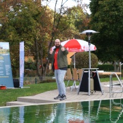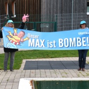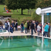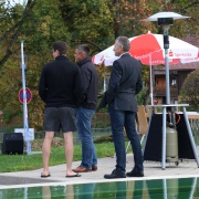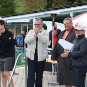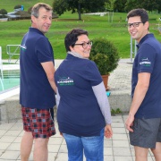 Zum Wettkampf der besonderen Art, vor allem bei kühlen 12,5 Grad Luft- u. 17 Grad Wassertemperatur, haben sich im Erlebnisbad Schönberg "EBS" die Vertreter der Bürgerstiftungen Schönberg und Grafenau getroffen. Ausgangspunkt war eine Wette zugunsten einer caritativen Maßnahme zwischen Grafenaus Bürgermeister Max Niedermeier und seinem Amtskollegen aus Schönberg, Martin Pichler, wem vom Drei-Meter-Brett die perfekte "Arschbombe" gelingt. Hierfür wurden je zwei Sprünge je Wettkämpfer durch die Jury Oberschiedsrichterin Helga Weinberger, Schulamtsdirektorin Frieda Dollinger und Sparkassenvorstand Stefan Prosser bewertet. Der erste Sprung war als Pflichtsprung die "Arschbombe", je höher das Wasser spritzt desto besser. Als zweites folgte der Kürsprung, bei dem die Teilnehmer ihr Bestes gaben. Als Teilnehmer für Grafenau traten der 1. Bürgermeister Max Niedermeier, Polizeichef Klaus Brunnbauer, Stiftungsrat Günter Klampfl und Kämmerer Florian Hackl mit dem Betreuer Rudi Schremmer an. Für Schönberg, dem Ausrichter stiegen der 1. Bürgermeister Martin Pichler, der 3. Bürgermeister Herbert Kern, Kaplan Antony und Gemeinderat Karl Schneck mit Betreuer Kreuzer Wolfgang aufs Drei-Meter-Brett. Es war ein spannendes Rennen durch das der Wettkampfsprecher Markus Roth führte. Zur Sicherheit war natürlich auch der örtliche Bademeister Daniel Peschl mit dabei. Höhepunkt waren die nahezu graziösen Sprünge der beiden Bürgermeister, was sich auch an der Bewertung der Jury wiederspiegelte - Von sechs möglichen Punkten verliehen sie sogar bis zu sieben. Verliehen wurde der Preis über 600 € durch die stellvertretende Landrätin und Oberschiedsrichterin Helga Weinberger an die Bürgerstiftung Grafenau, die nur sehr knapp gewonnen hat. Die Bürgermeister bedankten sich auch bei den Besuchern welche die beiden Teams besonders anfeuerten. Ein Dank gilt auch den Sponsoren mit je 100 € von der Stadt Grafenau, dem Markt Schönberg, Sparkasse Freyung-Grafenau, Franz Greipl, Josef Bauer sowie Rudi Schremer. Ein Video hierzu gibt´s auch in der BR - MEDIATHEK [hier klicken]