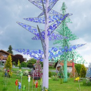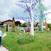 Meterhohe Bäume, bunte Blumen, ein Storch auf einem Kamin, ein riesiger Maibaum und dazwischen die heilige Familie und das alles aus buntem Glas. Das gibt es in Riedlhütte bei Glasscherben Köck zu bestaunen. Auf dem rund 1500 Quadratmeter großen Areal haben sich Erhard und Florian Köck einen Wald-Glas-Garten erschaffen, den man so sicher nicht oft finden kann.