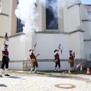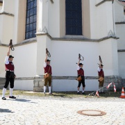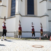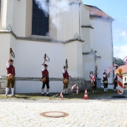 Auf dem Marktplatz in Schönberg fand der beginn des Auftakts durch die Böllerschützen Eberhardsreuth statt. Musikalische Begleitung gab es von der Marktkapelle Schönberg, der Blaskapelle Kirchdorf i. Wald, der Blaskapelle Innernzell und der Jagdhorn Bläsergruppe. Gegen 15:00 Uhr maschierte der Festzug über den unteren Marktplatz hoch zum Festzelt. Mit einer kurzen Begrüßung der Festwirtin Kornelia Kubitschek und dem Bieranstich durch den Schirmherren und 1. Bürgermeister Martin Pichler wurde das Fest offiziell eröffnet. Im Festzelt sorgte anschließend die Marktkapelle Schönberg für tolle Blasmusik. Am Abend gab es Stimmung im Festzelt mit der Band "D'MOOSNER".
