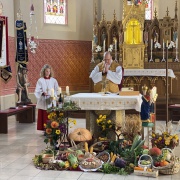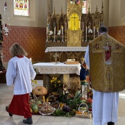 Der langjährigen Tradition folgend veranstaltete der Musik- und Heimatverein Haus im Wald e. V. auch dieses Jahr wieder das Erntedankfest am Ort. Die Vereine zogen gemeinsam in die Kirche ein, in der die heilige Messe mit Herrn Pfarrer Christopher Fuchs gefeiert wurde. Gestaltet und musikalisch umrahmt wurde der Gottesdienst durch die Gruppen des MHV. Mit einem abschließenden Applaus bedankten sich die zahlreichen Messbesucher beim Kinder- und Jugendchor unter der Leitung von Petra Fruth und der Hofmarkkapelle unter der Leitung von Franz Behringer.