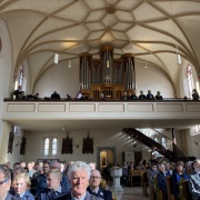 Nach der Gottesdienstfeier führte die Hofmarkkapelle den Festzug heuer wieder zur Veranstaltungshalle an, dem alle Vereine, Gruppen und Gottesdienstbesucher folgten. Auf dem Weg dorthin salutierten die Böllerschützen feierlich.