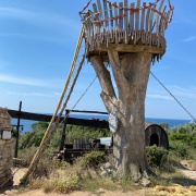 Nach der Anreise per Auto (Eintritt 80 kn = ca. 11 € | geöffnet von 7 bis 21 Uhr) sind wir bei der „Safari-Bar“ gestartet und haben die Küste im Uhrzeigersinn erkundet. Die Bar mit dem einzigartigem Dschungel Flair ist absolut sehenswert, sie war bei unserer Ankunft leider noch geschlossen. Mit exotischen Spielgeräten aus Holz finden hier auch Kinder ihre Freude, wie beim Rutschen oder Schaukeln.