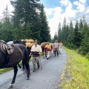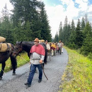 Grafenau. So sieht gelebte Geschichte aus: Am Fuße des Lusen wurde sechs Pferde mit Salzsäcken beladen und machten sich zusammen mit 10 Säumern auf den Weg, das weiße Gold nach Tschechien zu transportieren. Knapp 40 Kilometer Marsch über Stock und Stein lag vor den Händlern aus dem Mittelalter, bevor die wertvolle Fracht in der Partnerstadt Bergreichenstein abgeliefert werden konnte.