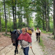 Knapp 10 Stunden waren die Salzhändler aus dem Mittelalter unterwegs, 7 Stunden und 35 Minuten davon waren reine Marschzeit, das flotte Tempo wurde dabei von den Pferden vorgegeben. Am Samstag zogen die bayerischen Händler auf dem Bergreichensteiner Stadtplatz ein, wo zu Ehren des 30-jährigen Städtepartnerschaftsjubiläums mit Grafenau ein großer Markt aufgebaut war. Das zweitätige Programm am Stadtplatz war sehenswert, besonders die mittelalterlichen Vorstellungen über Tanz, Schwertkampf und Musik beeindruckten die zahlreichen Besucher. Bei der Organisation des Säumerzuges hatte sich der Säumerverein rund um den ehemaligen Kastellan der Karlsburg, Zdenek Svoboda, mächtig ins Zeug gelegt. Auf tschechischer Seite stießen auch noch Bergreichensteiner Säumer mit ihren Pferden zur Gruppe aus dem Bayerischen Wald. Gemeinsam hielt man dann Einzug auf dem Stadtfest, um das Salz beim Hohen Rat abzuliefern. Ein hitziges Rededuell lieferte sich Säumervater Willi Schindler dabei mit Wenzel Habgierig, der den Säumern viel zu wenig Gulden für die kostbare Fracht bezahlen wollte. Zum Schluss konnte man sich auch auf einen fairen Preis einigen, zumal es reichlich Pivo (Bier) als Draufgabe gab. Da waren auch die bärtigen Gesellen versöhnt und nachdem die Pferde versorgt waren, wurde gemeinsam auf die gelebte Partnerschaft angestoßen.