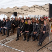 Nach den Reden enthüllten der Bürgermeister und der Staatsminister die erbaute Gedenkplatte. Danach folgte der symbolische Spatenstich und die Bayernhymne wurde gesungen. Im Anschluss eröffnete der Bürgermeister den Stehempfang mit einem kleinem Buffet.