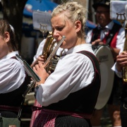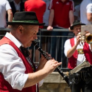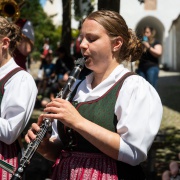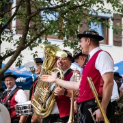 Standkonzert der Hofmarkkapelle Haus i. Wald & Blaskapelle Perlesreut am Hofmarkplatz Haus i. Wald und Fest-Aufmarsch zum Festplatz mit den Böllerschützen des MHV Haus.