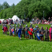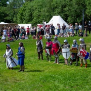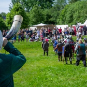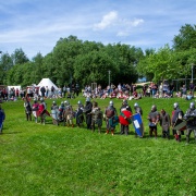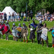 Im Europapark Bayern-Böhmen in Bogen war an diesem Wochenende viel für die Besucher geboten. Neben vielen Lagergruppen, die den Besuchern das damalige Leben nahe brachten, gab es zahlreiche Programmpunkte, wie Feldschlachten, Umzüge, Schaukämpfe, eine große Feuershow uvm. Highlight waren die Vollkontakt Schwertkämpfe mit Schild und Schwert und die Vollkontakt Schwertkämpfe Burhurt (5 gegen 5).