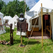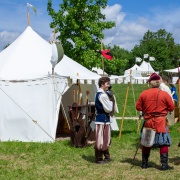 Im Europapark Bayern-Böhmen in Bogen war an diesem Wochenende viel für die Besucher geboten. Neben vielen Lagergruppen, die den Besuchern das damalige Leben nahe brachten, gab es zahlreiche Programmpunkte, wie Feldschlachten, Umzüge, Schaukämpfe, eine große Feuershow uvm. Highlight waren die Vollkontakt Schwertkämpfe mit Schild und Schwert und die Vollkontakt Schwertkämpfe Burhurt (5 gegen 5).
