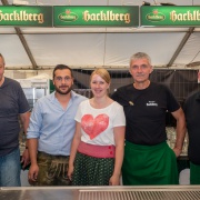 Zum Auftakt des 52.Volksfestes in Schönberg verköstigte Festwirt Simon Pleintiger die Gäste mit einem Pulled Pork Burger.