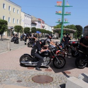 Am Nachmittag wurde eine Bewirtung unserer Mitbürger/innen mit Handicap im Festzelt unter dem Motto "Mitfeiern trotz Handicap" mit XXL-Riesenleberkäse organisiert - währenddessen war die Motorradsegnung am Marktplatz.