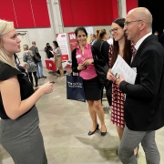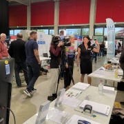 180 Aussteller präsentierten sich und/oder ihre Produkte und Dienstleistungen an bereitgestellten Tischen.