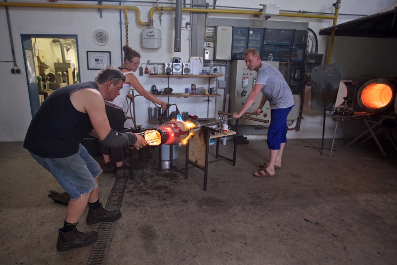 Die Künstler der Meisterklassen stellen die entstandenen Werke aus und diskutieren mit regionalen Glasschaffenden technische und gestalterische Fragen.